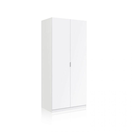 El armario Low Cost 2 puertas es un armario sencillo y funcional con 2 puertas batientes con tiradores, ideal como armario auxiliar o como armario de dormitorio para una persona.