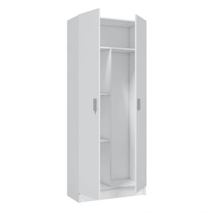 Con el armario Multiusos 2 puertas 3 zonas lo tendrás todo recogido y oculto gracias a sus 2 puertas batientes con bisagras metálicas y tiradores en ABS pintados de gris aluminio.