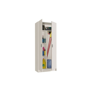 El armario Multiusos 2 puertas 3 zonas es un armario auxiliar de gran capacidad perfecto como armario supletorio para la cocina o el patio interior, como armario de limpieza o como despensa.