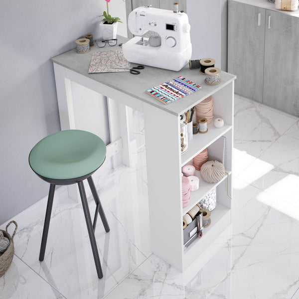 Esta mesa de cocina alta con estanterías es ideal si lo que buscas es un espacio para poder, por ejemplo, desayunar rápido sin salir de la cocina o hacer el aperitivo mientras cocinas a la vez.