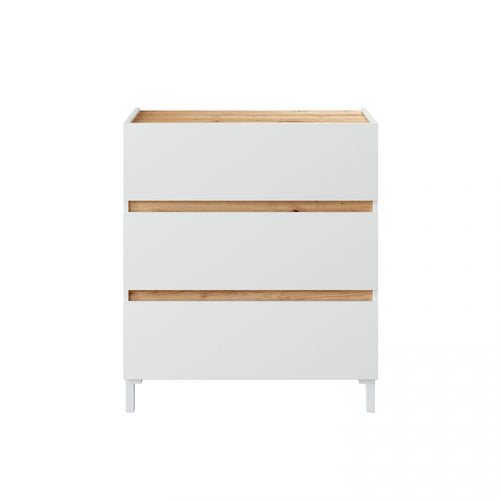 Cuenta con tres espaciosos cajones extraíbles, además, incorpora guías correderas metálicas, lo que facilita su apertura y cierre con total comodidad y patas en ABS que protegen en suelo en todo momento.