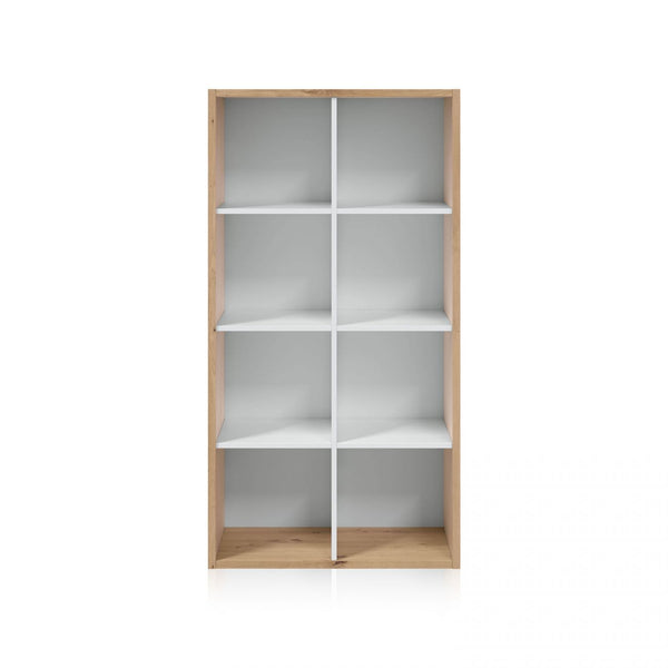 El mueble se compone de ocho espacios de almacenaje distribuidos en dos filas horizontales, lo que facilita una organización clara y accesible. Cada hueco es cuadrado y simétrico, lo que proporciona una estética ordenada y limpia. Esta disposición lo convierte en una opción perfecta para mantener el orden sin renunciar al estilo. Ya sea colocada de forma vertical o en posición horizontal, la estantería Dess se adapta con naturalidad al espacio disponible.