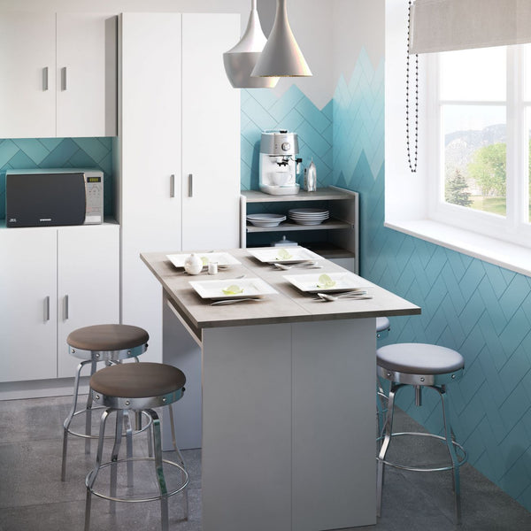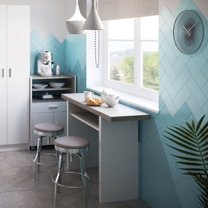 Su sistema de apertura en dos posiciones te permitirá pasar de los 35 a los 70 cm en un abrir y cerrar de ojos. Y por si fuera poco, la mesa dispone de una balda debajo del tablero para que guardes en ella todos los utensilios, la vajilla o los textiles de cocina que necesites tener siempre a mano.