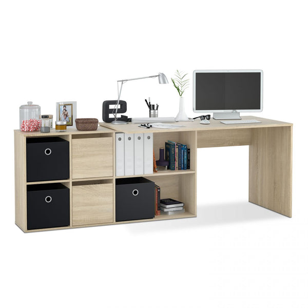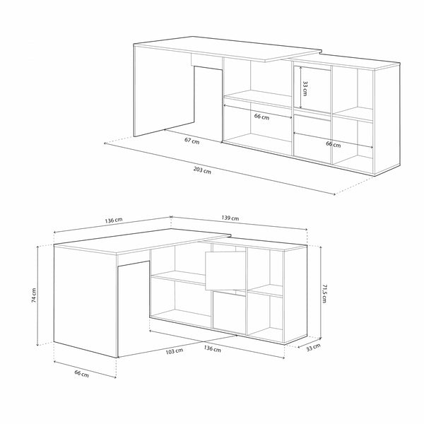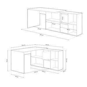 • Mesa de escritorio multiposición y reversible: puedes montar el módulo de almacenaje a derecha o izquierda, de cara o de lado