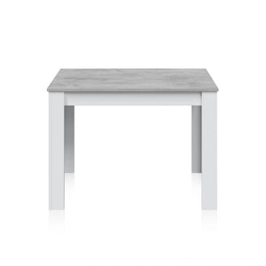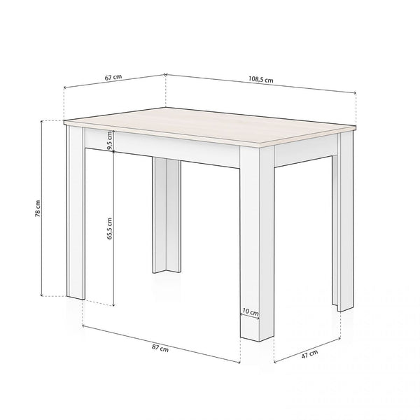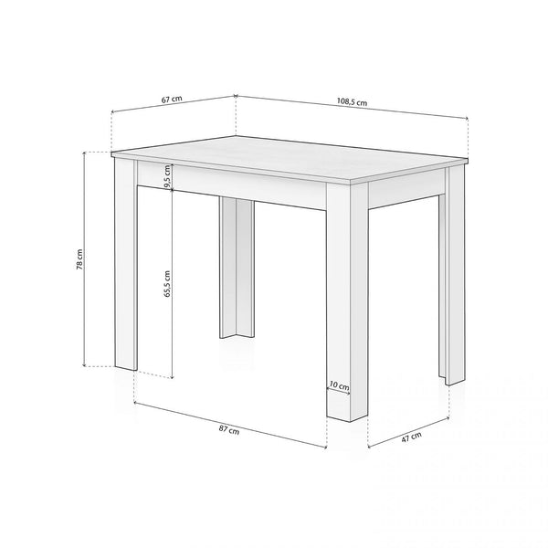 Las patas de la mesa son gruesas y rectas, con un diseño sencillo que transmite estabilidad. Su color blanco refuerza la sensación de limpieza y orden, y al ser uniformes en cada uno de los extremos, aseguran una base firme para el uso cotidiano. Este tipo de estructura es ideal tanto para cocinas como para comedores pequeños, ya que permite optimizar el espacio sin renunciar a la estética ni a la funcionalidad.