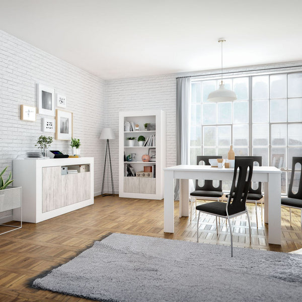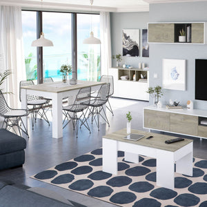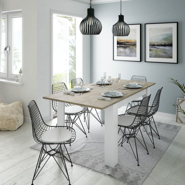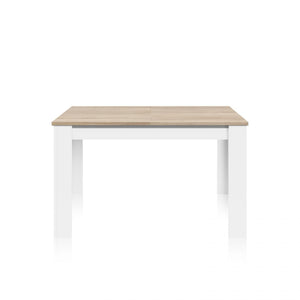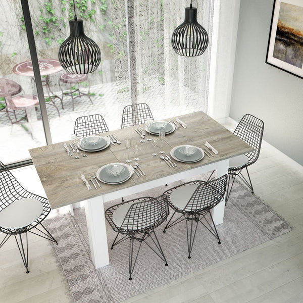La mesa de comedor extensible Kendra es una práctica mesa extensible para el comedor con dos posiciones, que te permitirá disfrutar de tu familia y tus amigos aunque no tengas mucho espacio gracias a su sistema de fácil apertura. Está elaborada en melamina de alta calidad y presenta líneas sencillas y elegantes. Encaja a la perfección en decoraciones variadas.
