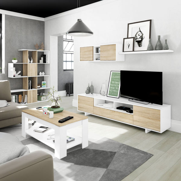 El mueble de comedor Belus es un mueble de TV muy completo, compuesto por 3 módulos capaces de decorar de un plumazo el rincón de la tele con un estilo joven y moderno.