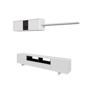 El módulo inferior dispone de dos espacios laterales de almacenaje cerrados con puertas y un estante doble en el centro, ideal para situar en él aparatos electrónicos como el DVD, la consola, etc. Debajo de los estantes dispones también de un pequeño hueco con puerta abatible.