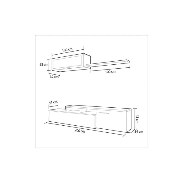 - Medidas módulo inferior: 200cm (largo) x 43cm (alto) x 41-34cm (fondo)